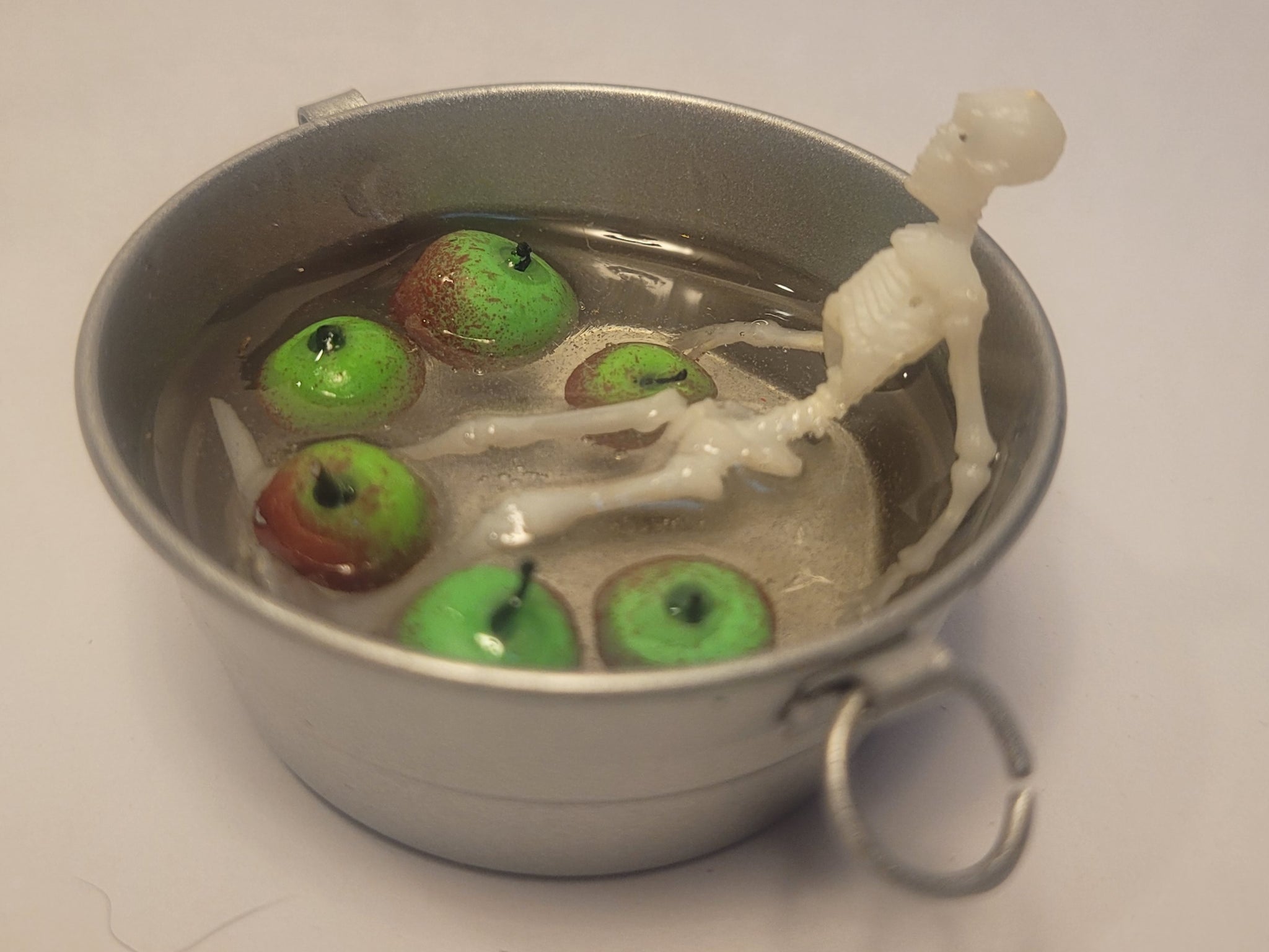 Miniature Skeleton in Galvanized Tub Bobbing for Apples