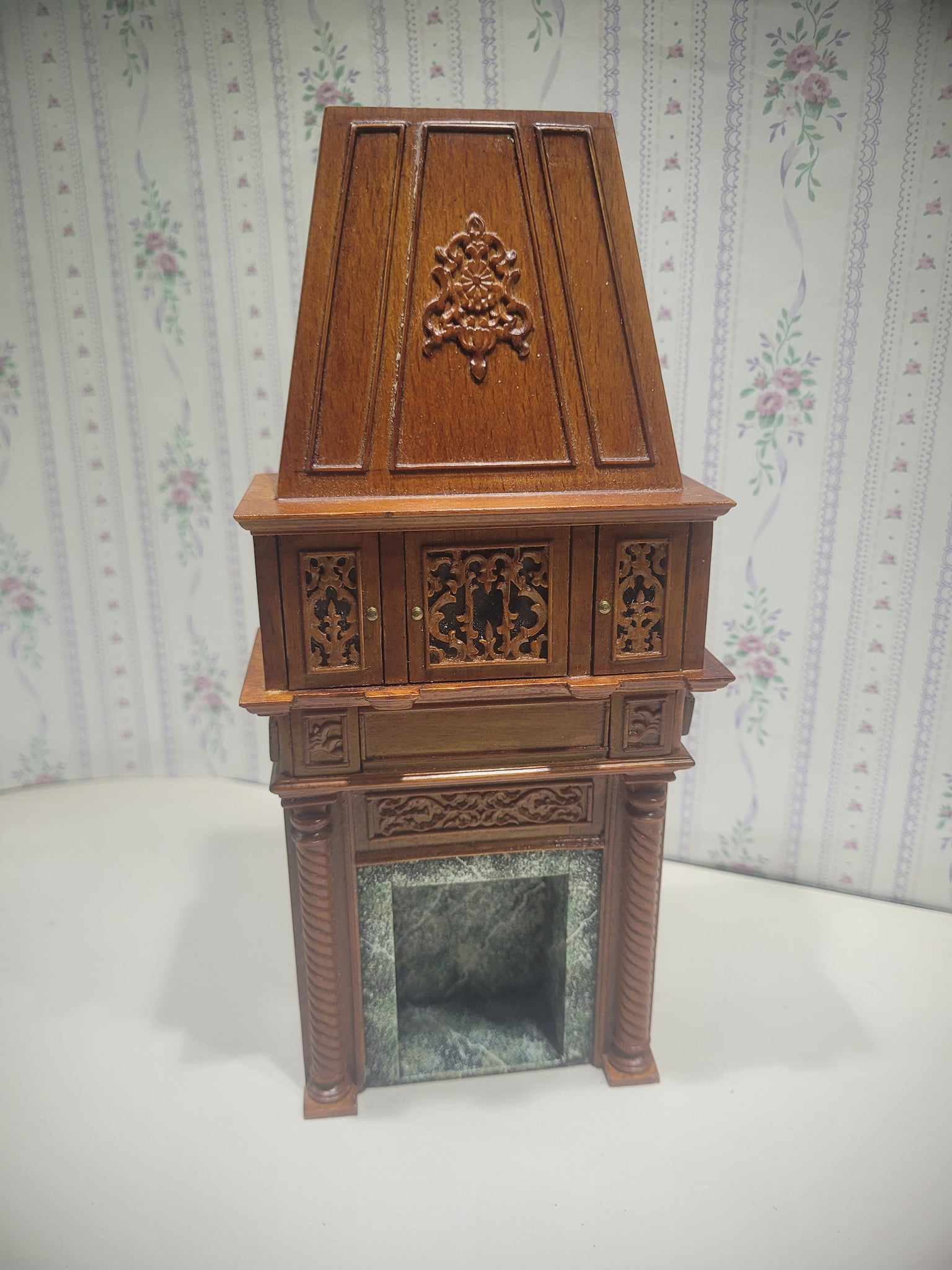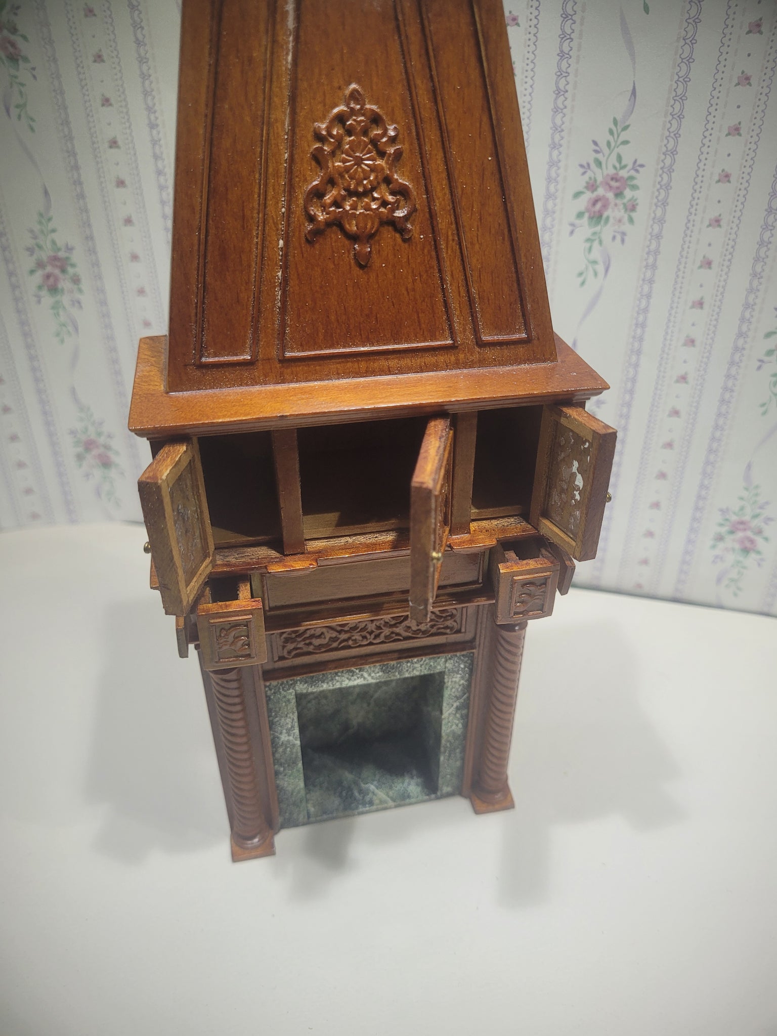 Tall Wooden Fireplace w/ Cabinets and Faux Marble Interior
