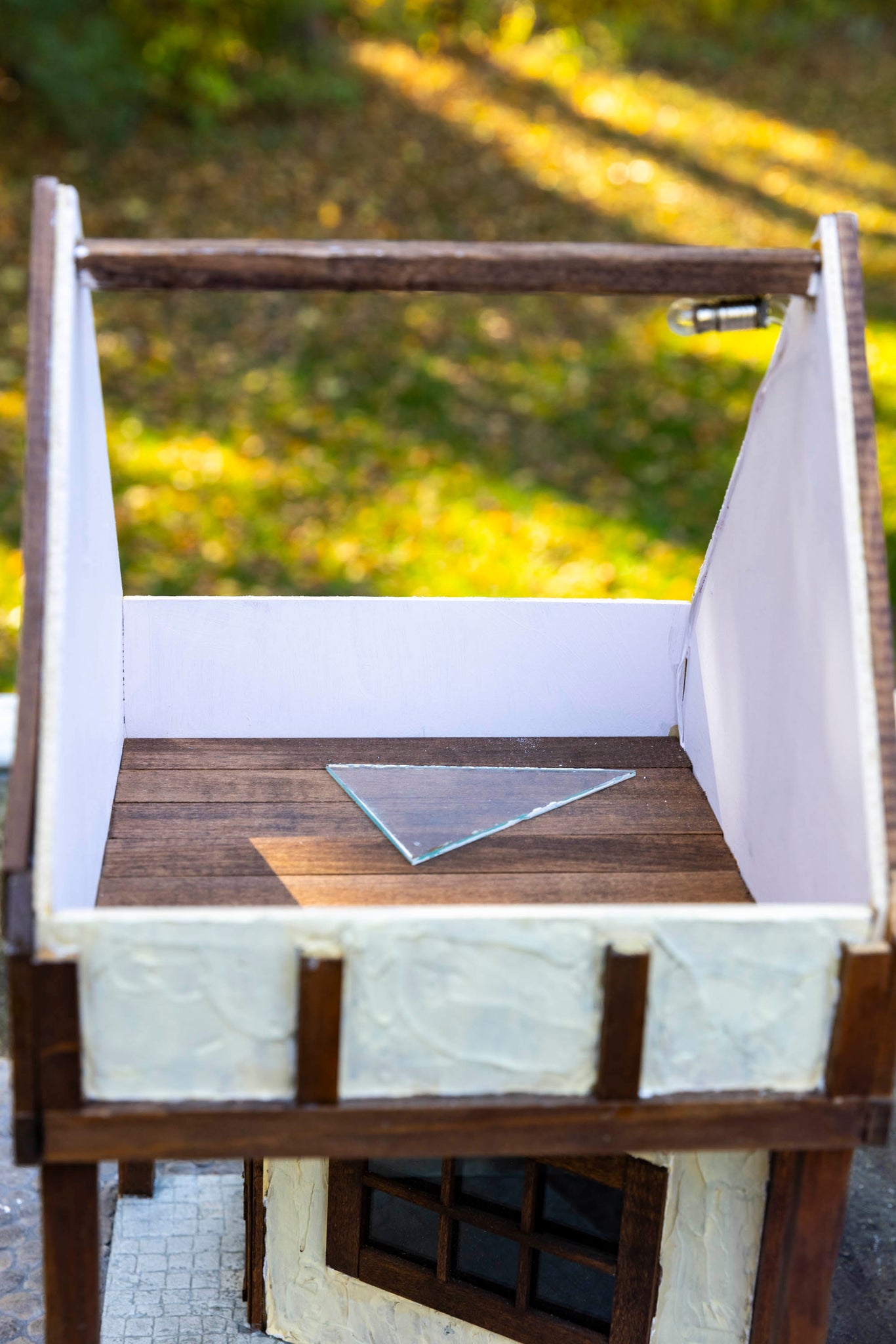 2 Story Tudor house which can be a shop or a home. The roof lifts up and the plexi glass popped off when we removed the roof for the picture. Is included.