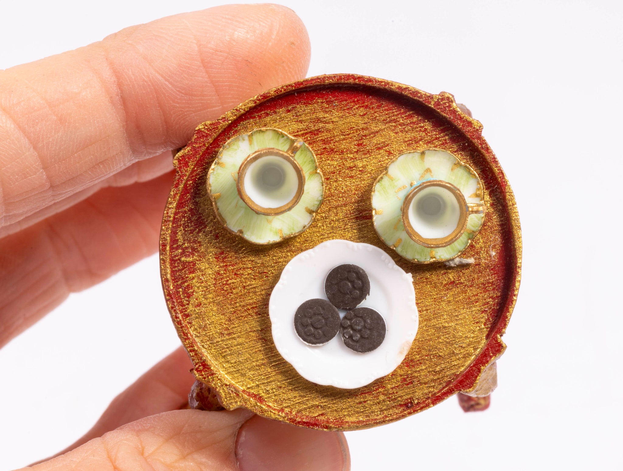 Two Bespaq chairs with white cushions and a small table with two cups of tea and cookies. Wooden chairs and table.