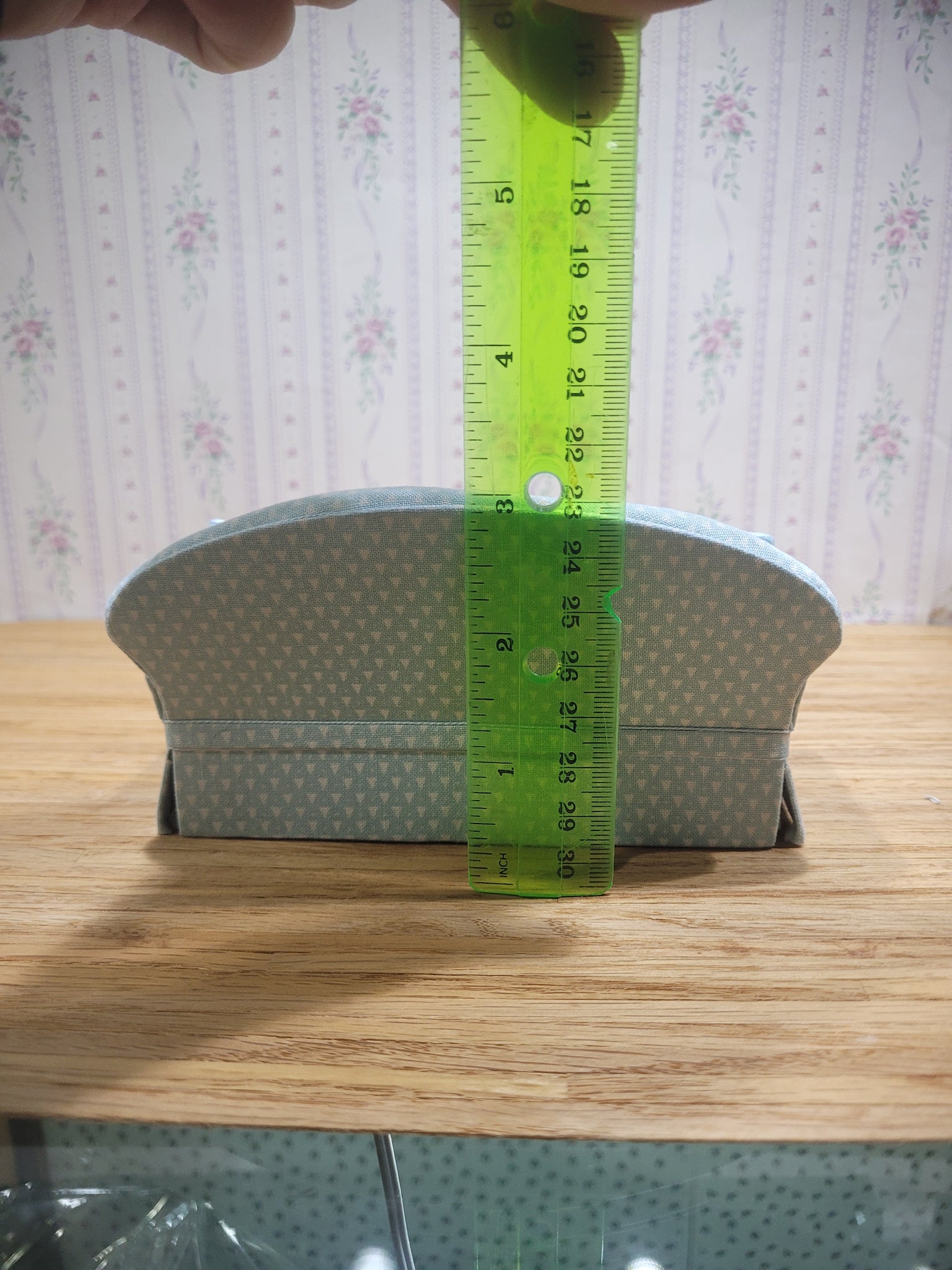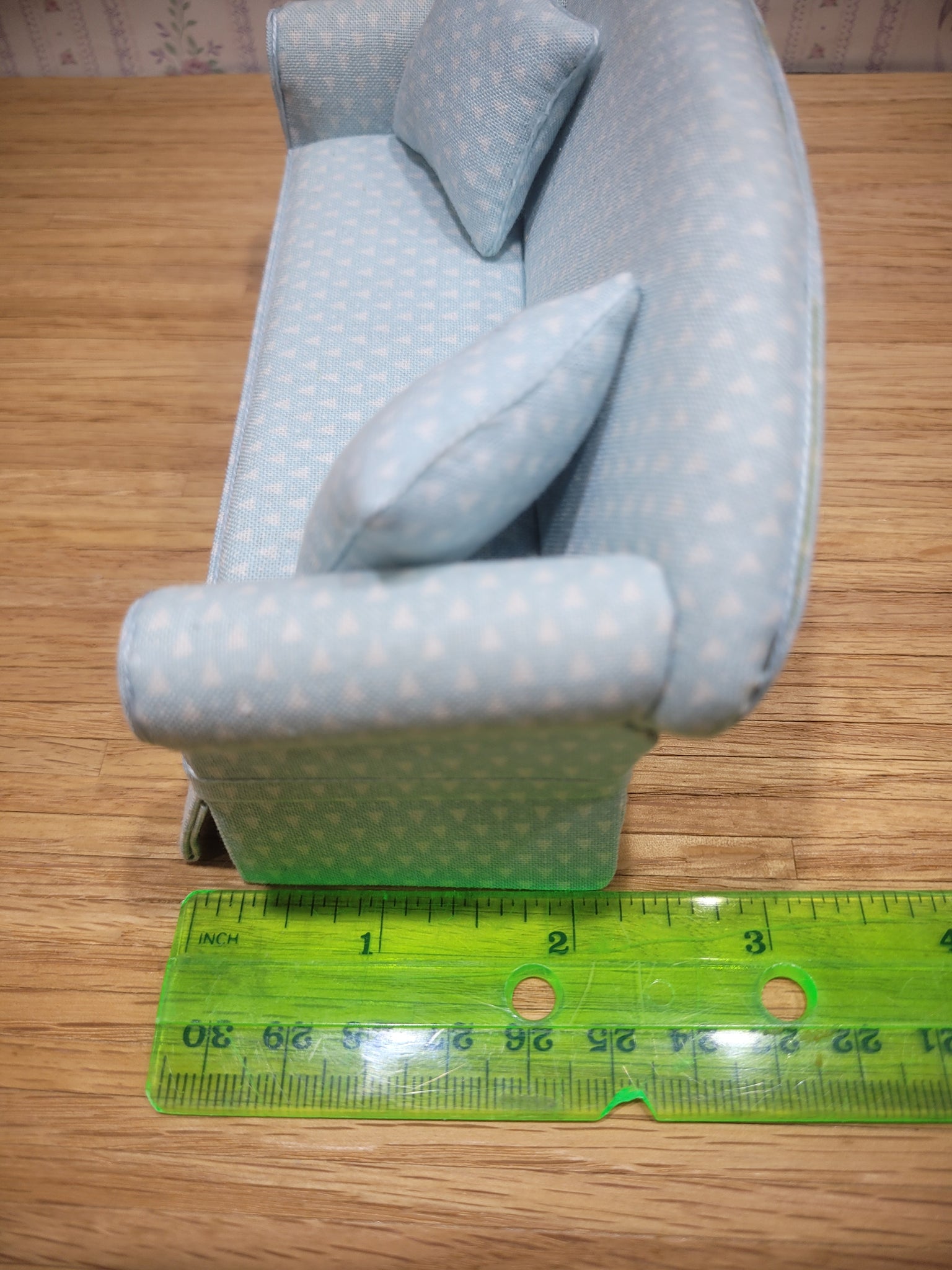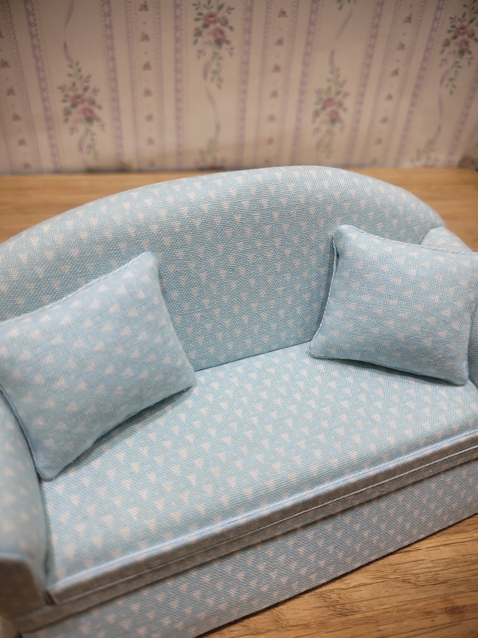 White Triangle Pattern Light Blue Sofa with 2 pillows.
