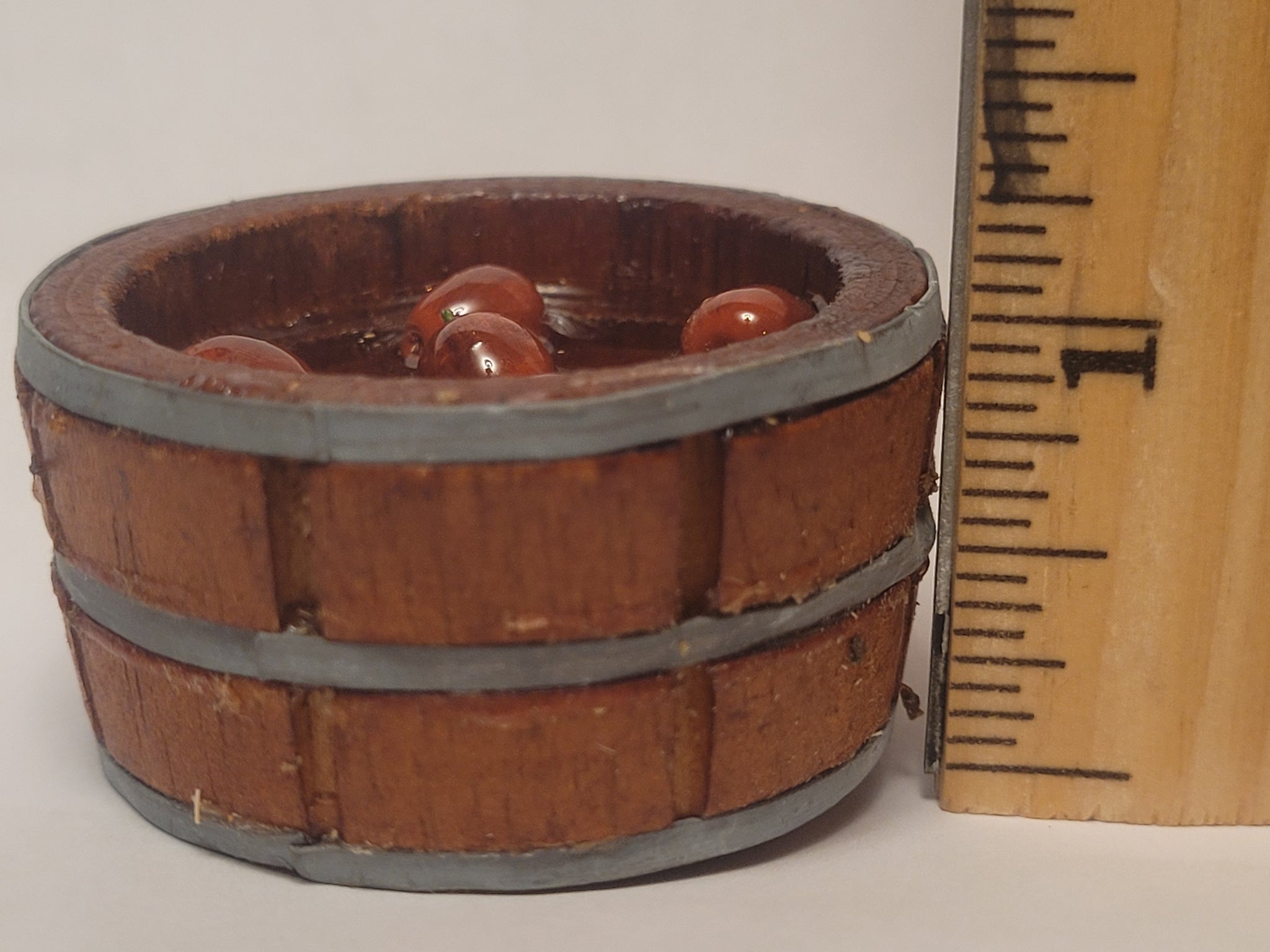Handmade Miniature Red Delicious Apples and water inside Wooden Bucket for Bobbing